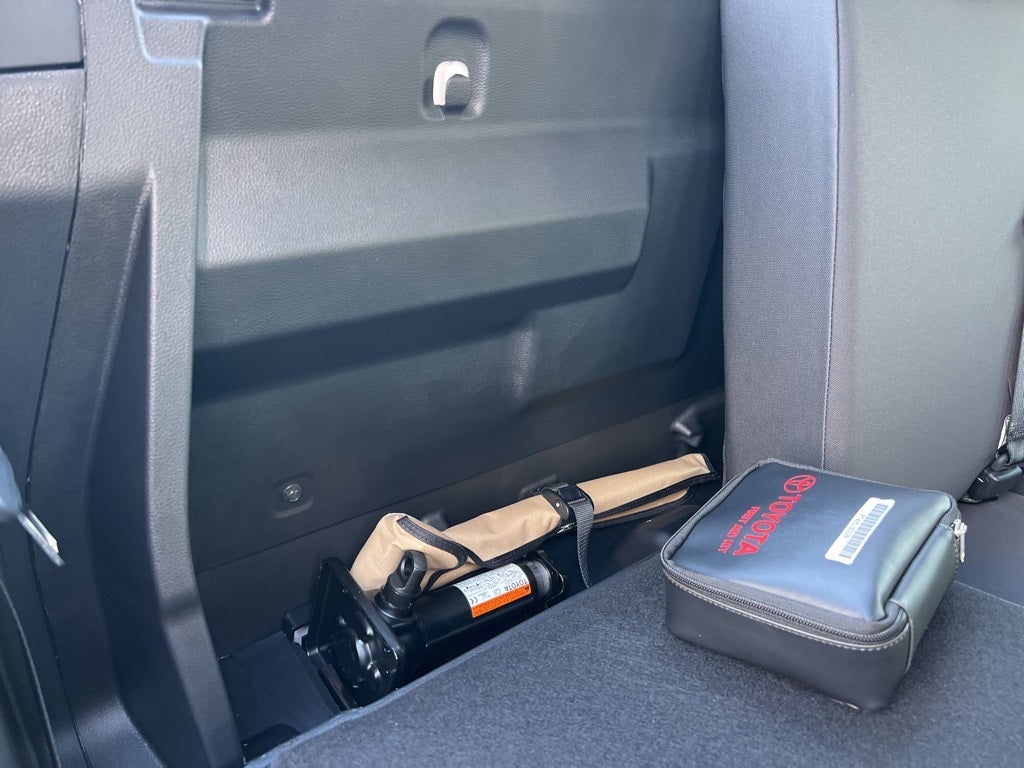 - Rear under-seat storage compartment with removable and adjustable partitions